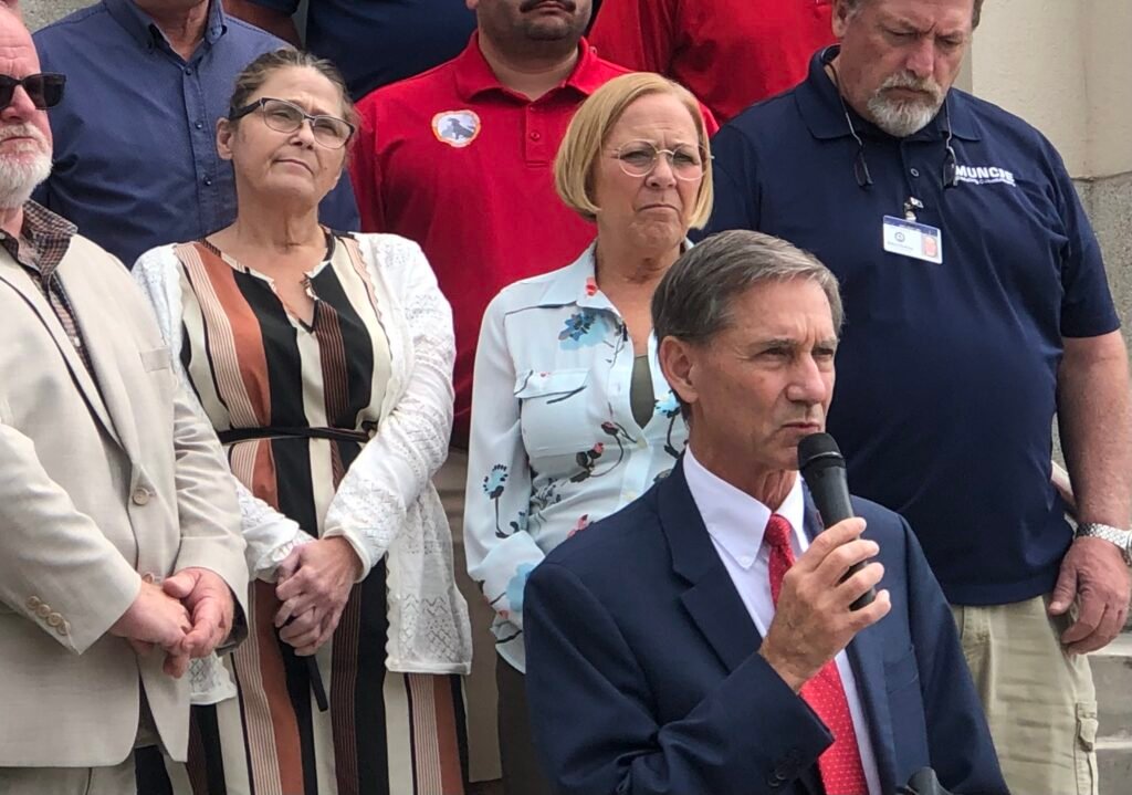 MUNCIE, Ind. — At a press conference held at Muncie City Hall, obligatory cuts from Senate Bill 1 were addressed. Standing behind Ridenour were thirteen members of his administration as the mayor talked about his draft for the 2026 annual budget, expected to be reviewed by city council throughout the month of September.