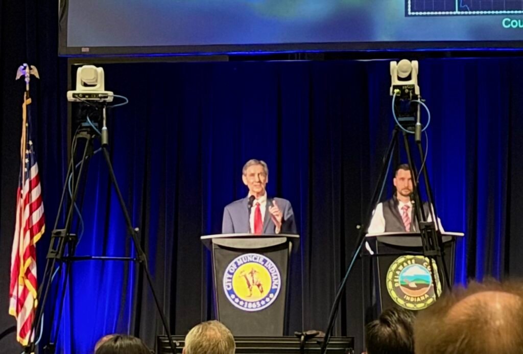 MUNCIE, Ind. — Muncie Mayor Dan Ridenour and Delaware County Commissioner Stephen Brand gave a “State of Our Community” address, previously called “State of the City,” that ran for just over 80 minutes on the morning of Mar. 5. Roughly 600 attendees came to see as the mayor told the audience “we collaborate on a lot more things than many people realize.”